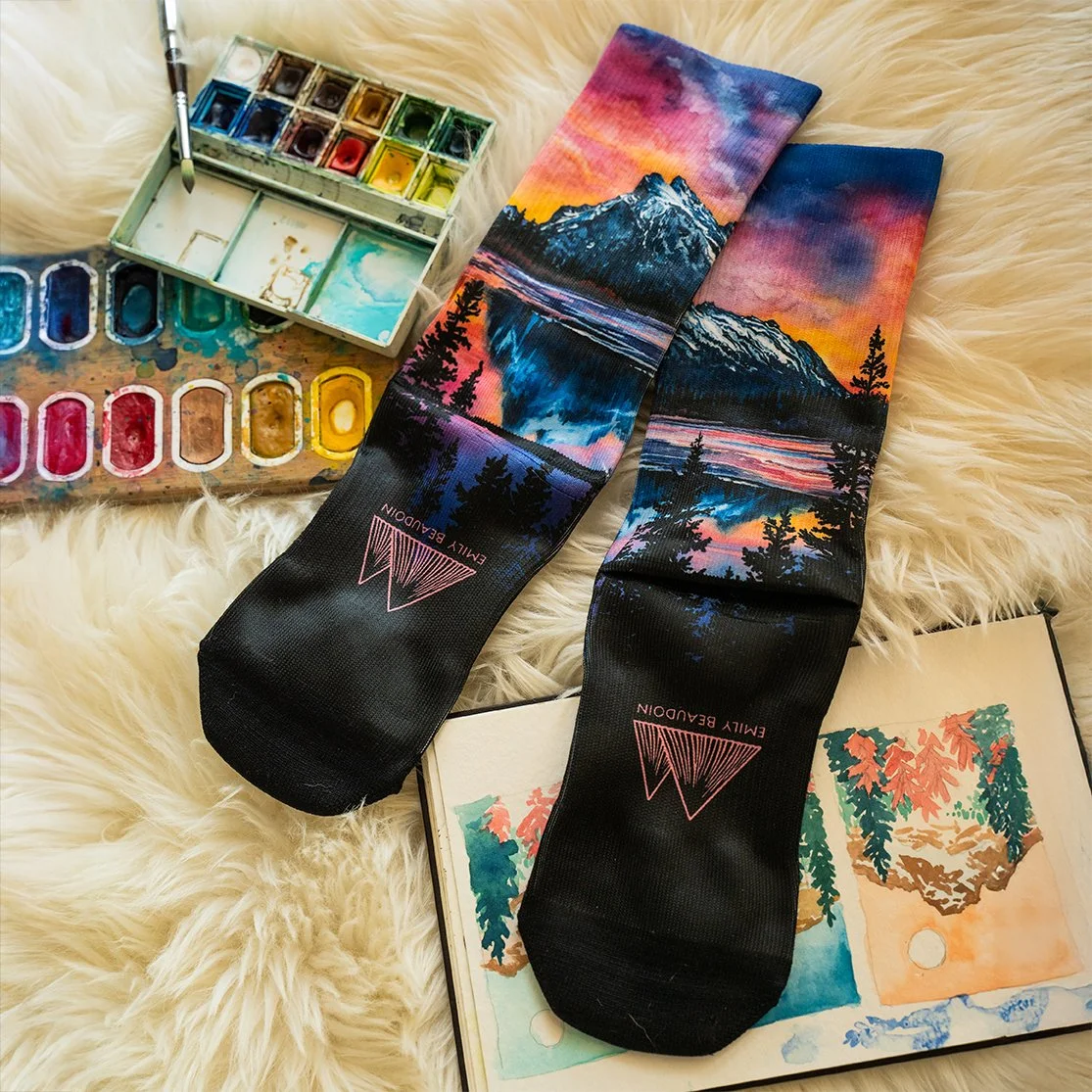 Every year during the lead up to the holidays, I paint a small batch of these one of a kind tree ornaments. I love setting aside time for these little paintings because it allows me to experiment, try new colour palettes, and create cozy little worlds in just a couple of hours versus the 40-80 hours I usually spend on my larger pieces. I love the quiet routine of creating them, from dreaming up each scene to sketching them out, drilling holes in sides of the little wooden frames and screwing in the gold loops by hand, to photographing them out in the world. I love lining them all up together and looking into each little scene, letting myself be transported to far away places.
